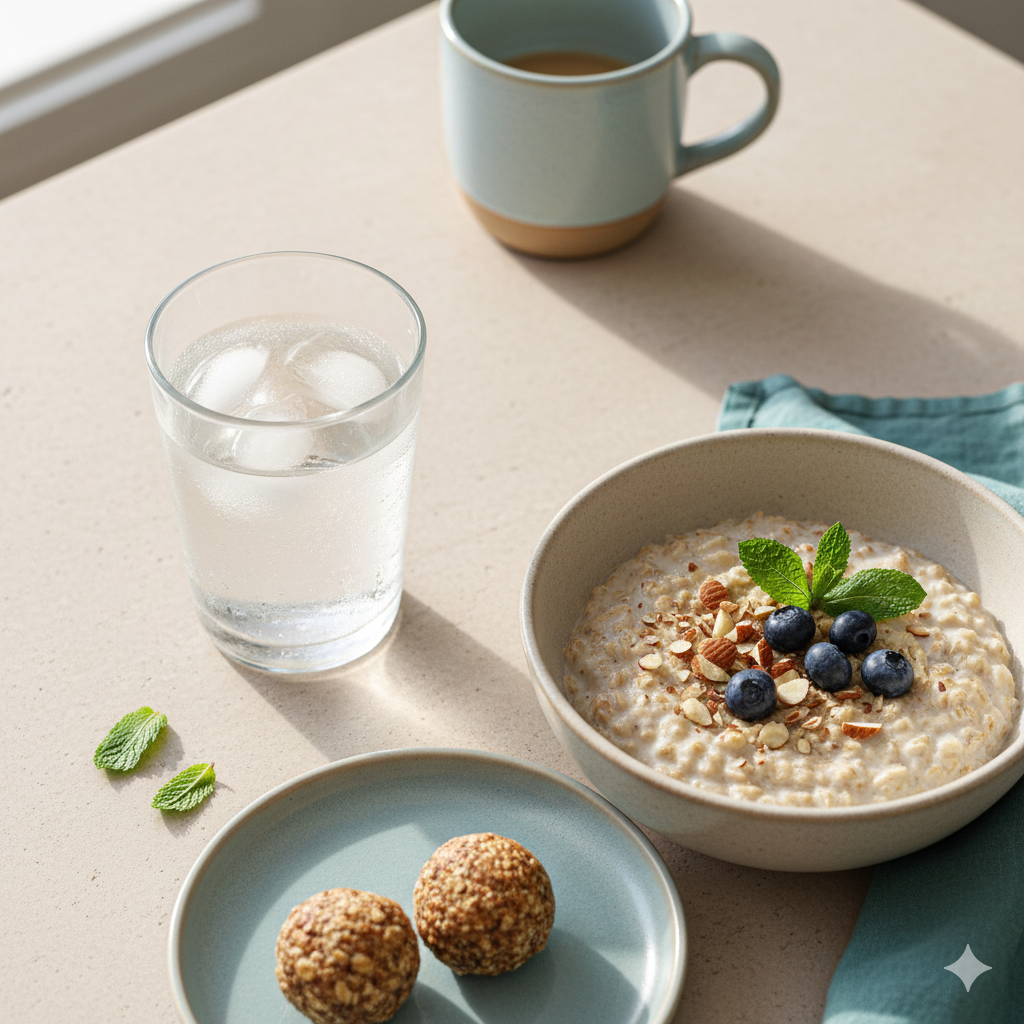 ADHD-friendly tip: Keep a full glass (or bottle) of water by your bed so it’s the first thing you reach for. Then grab a simple, nourishing meal—think eggs, yogurt, or overnight oats with nuts or fruit. Protein and healthy fats keep blood sugar steady and focus sharp.